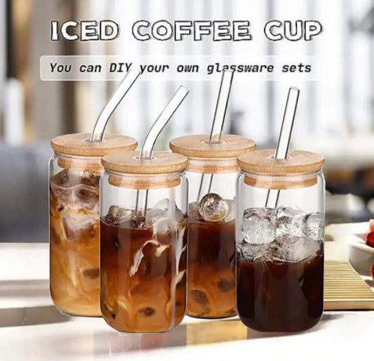 Coffee Glass With Lid and Straw