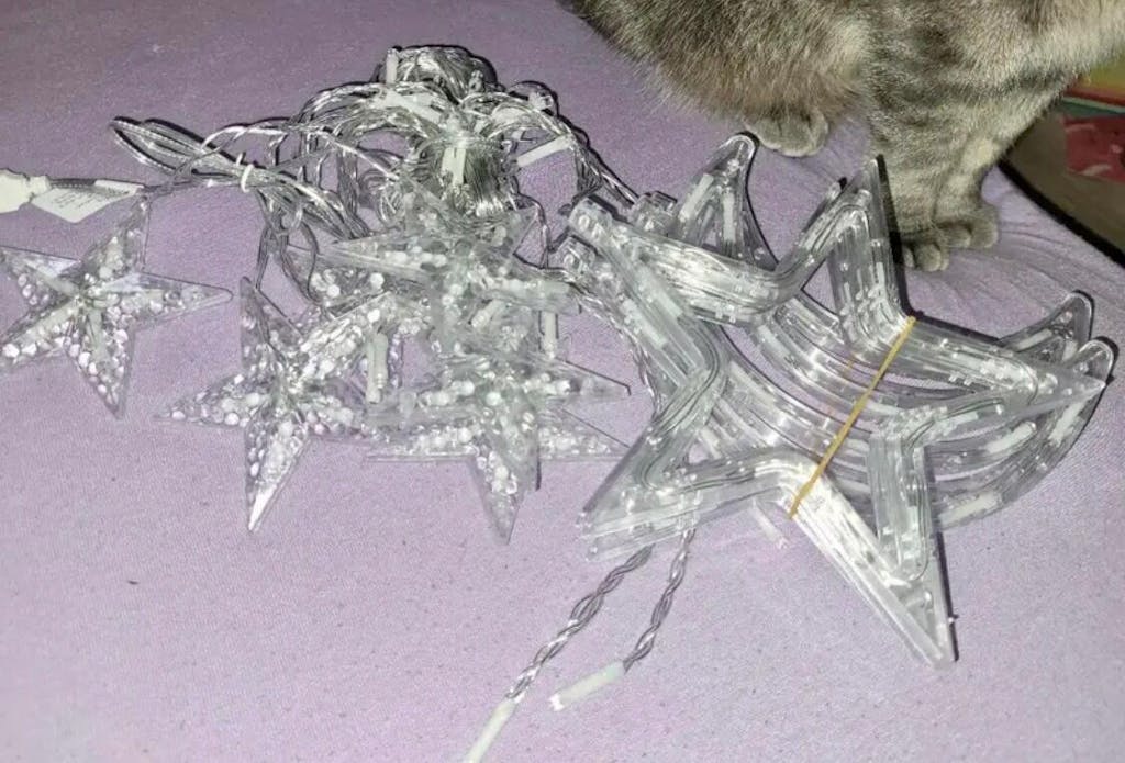 Star Design= 6 small stars, 6 big stars 10ft lenght and approx 140 leds (electric operated)